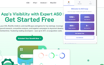 ASO Leap — это расширение Chrome, разработанное для разработчиков приложений и маркетологов, стремящихся повысить видимость и рейтинг своих приложений для iOS, Android, iPadOS и macOS. Этот инструмент предлагает мгновенный анализ любого приложения из App Store или Google Play, позволяя пользователям собирать необходимые данные одним щелчком мыши. Ключевые функции включают доступ к отзывам о приложениях, установкам ключевых слов и услуги по оптимизации, разработанные для обеспечения высоких позиций по критически важным целевым ключевым словам. С сообществом из более чем 90 000 довольных пользователей ASO Leap зарекомендовал себя как эффективный инструмент, генерирующий более 200 000 приложений с пятью звездами.